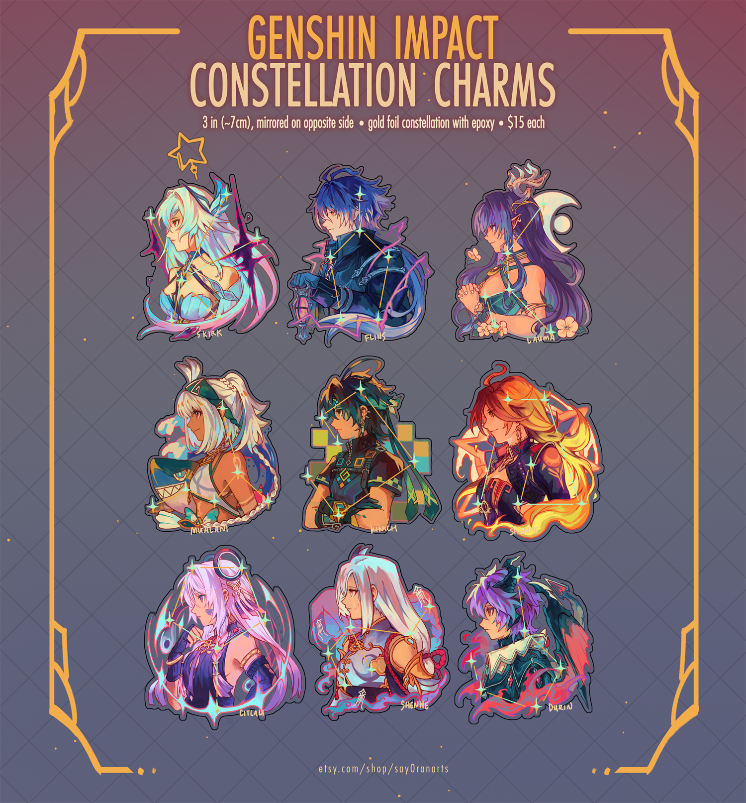 Genshin Impact 3" Gold Foil Constellation Charms (Pt. 2)