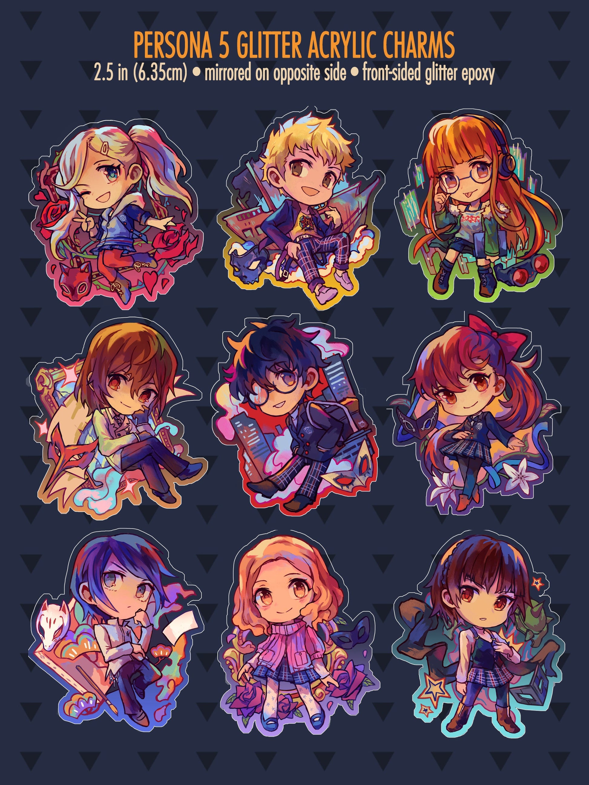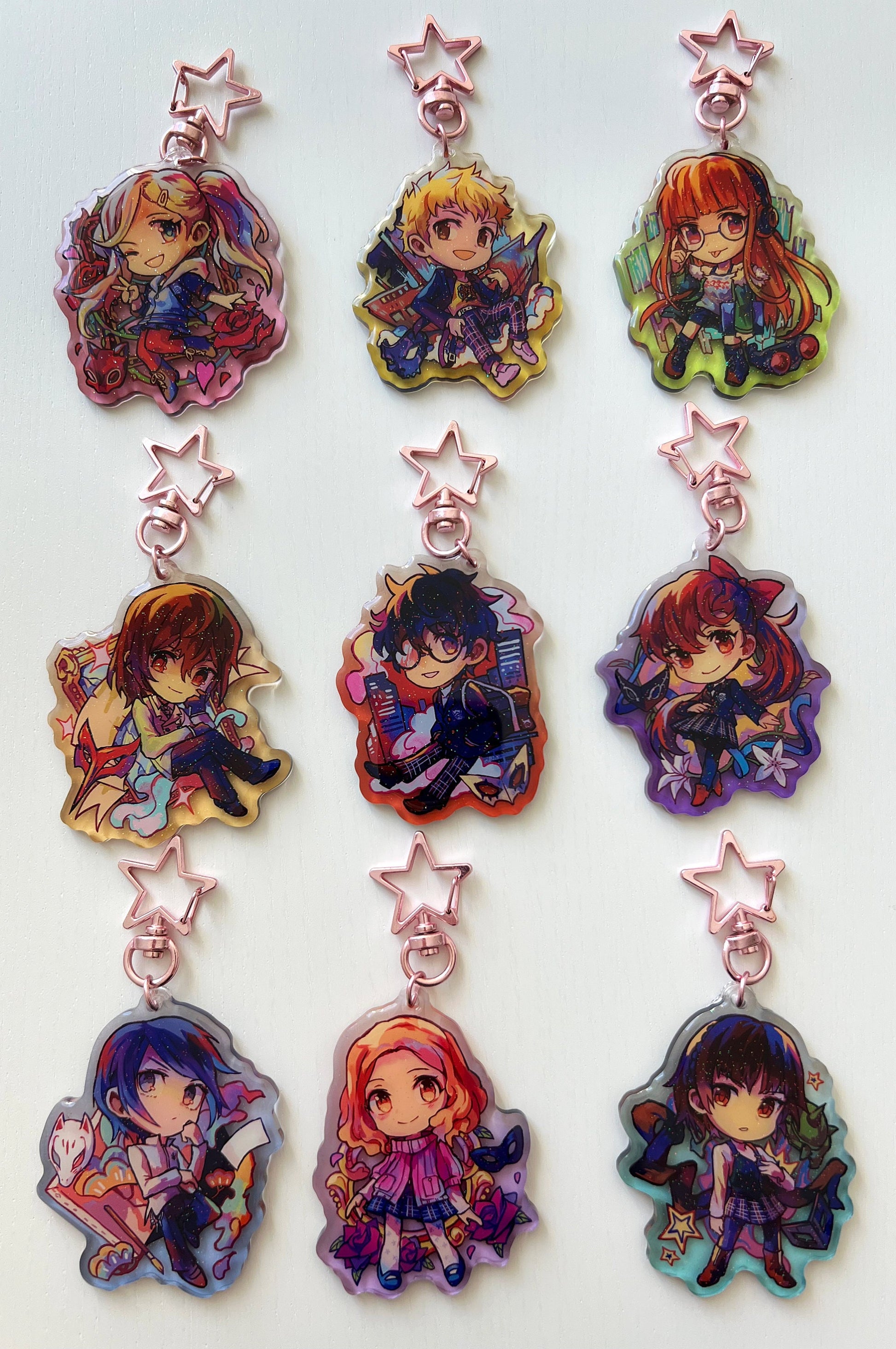 Colorful acrylic charms of the P5 cast!