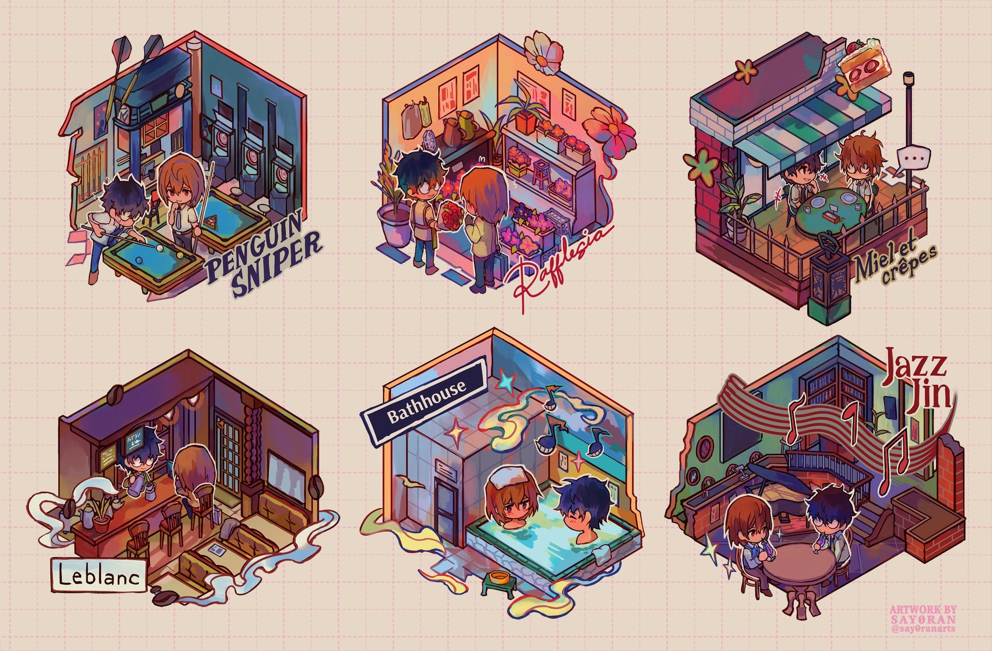 P5 Isometric Akechi & Joker Hangouts Acrylic Keychain Standees