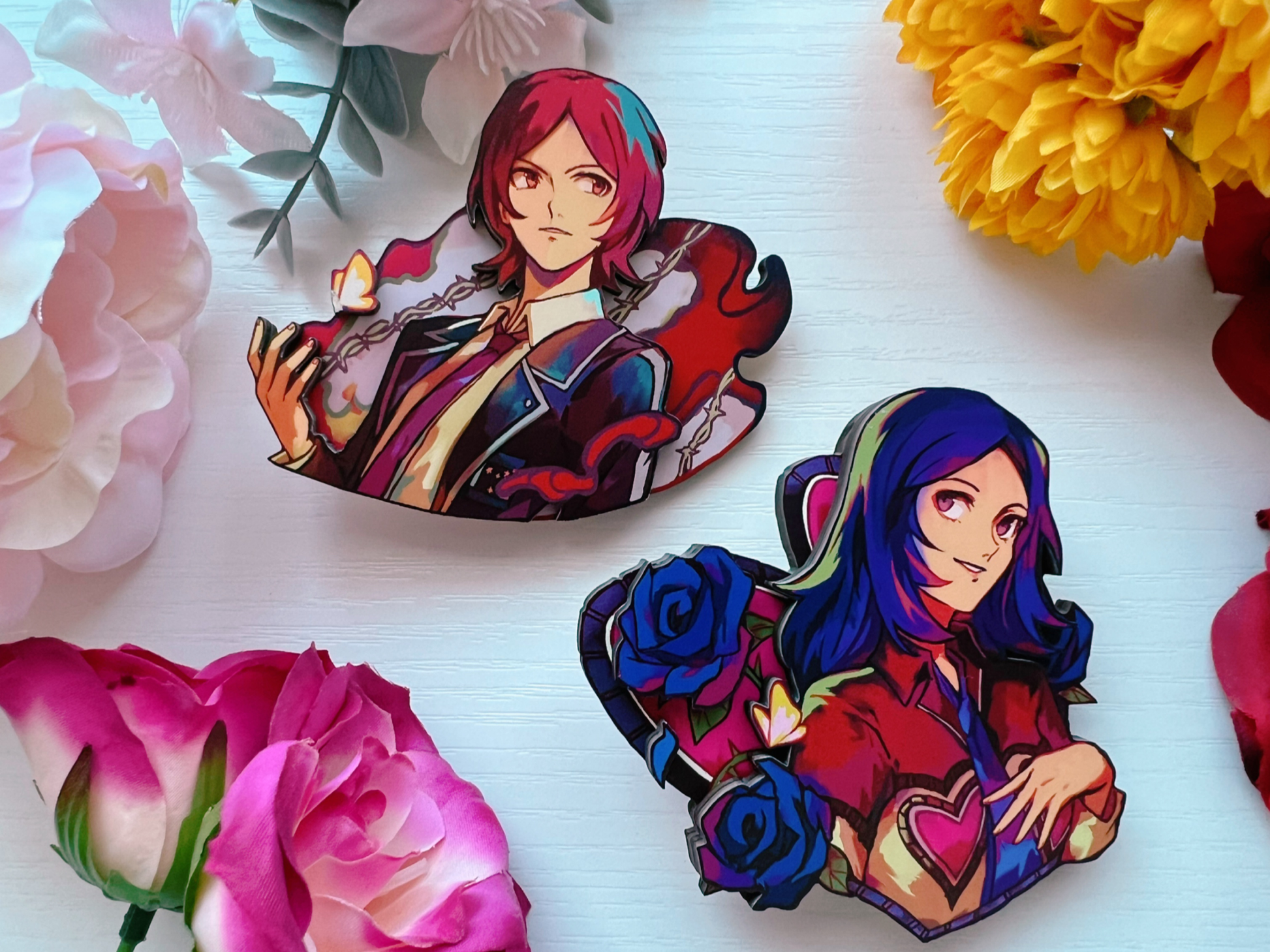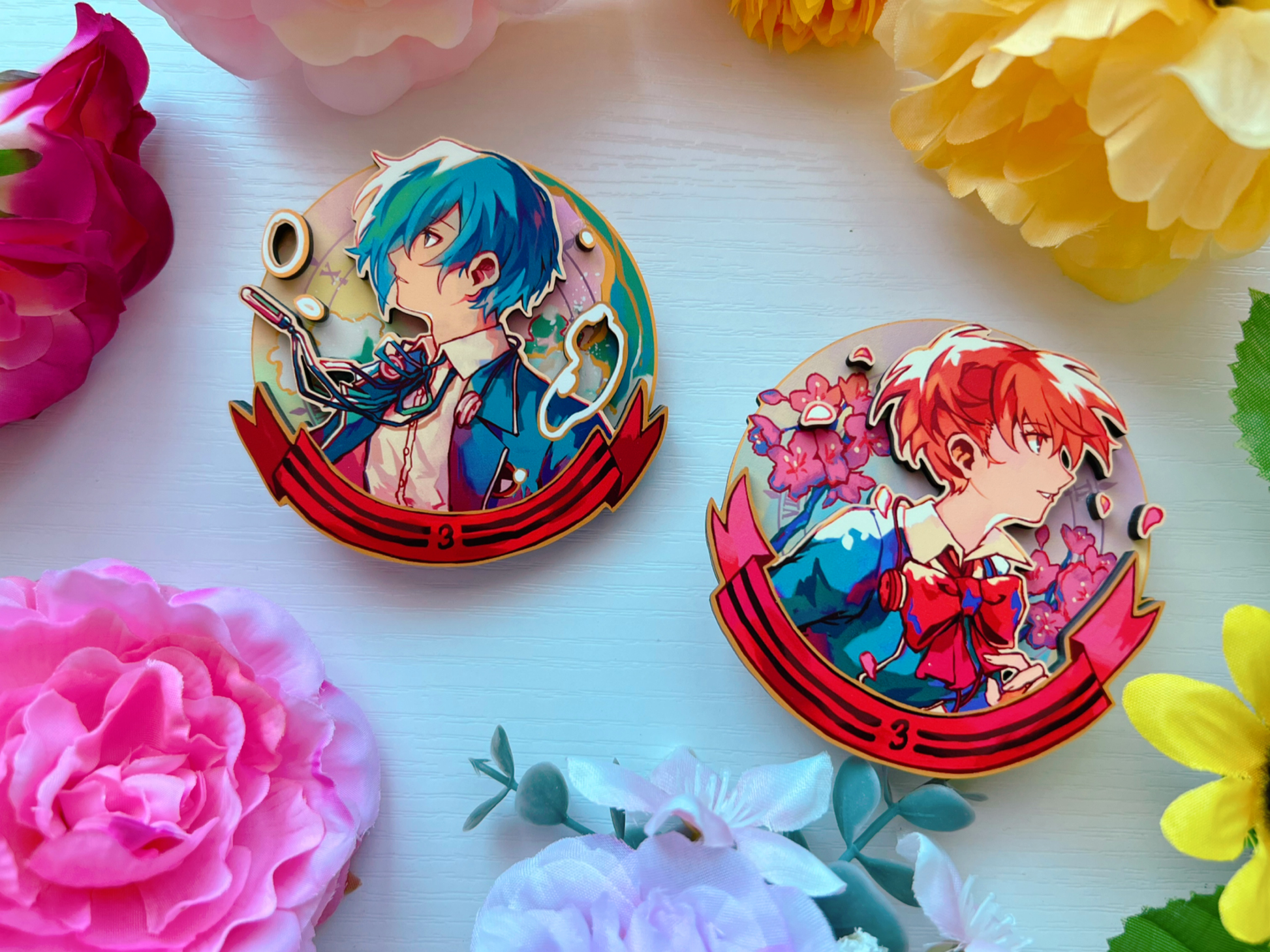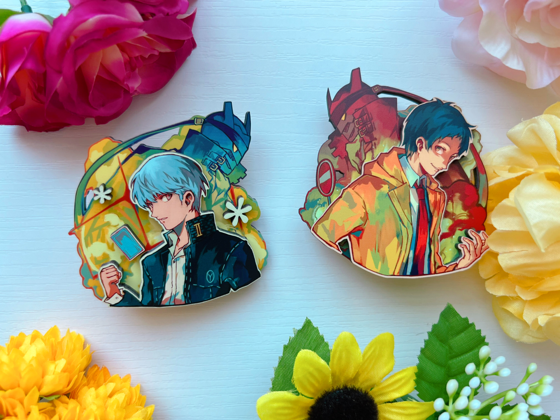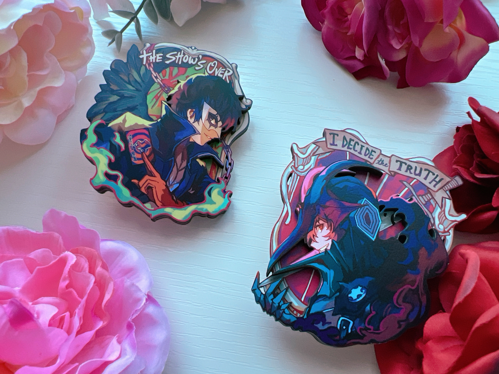 Layered wood pins of various Persona characters!
