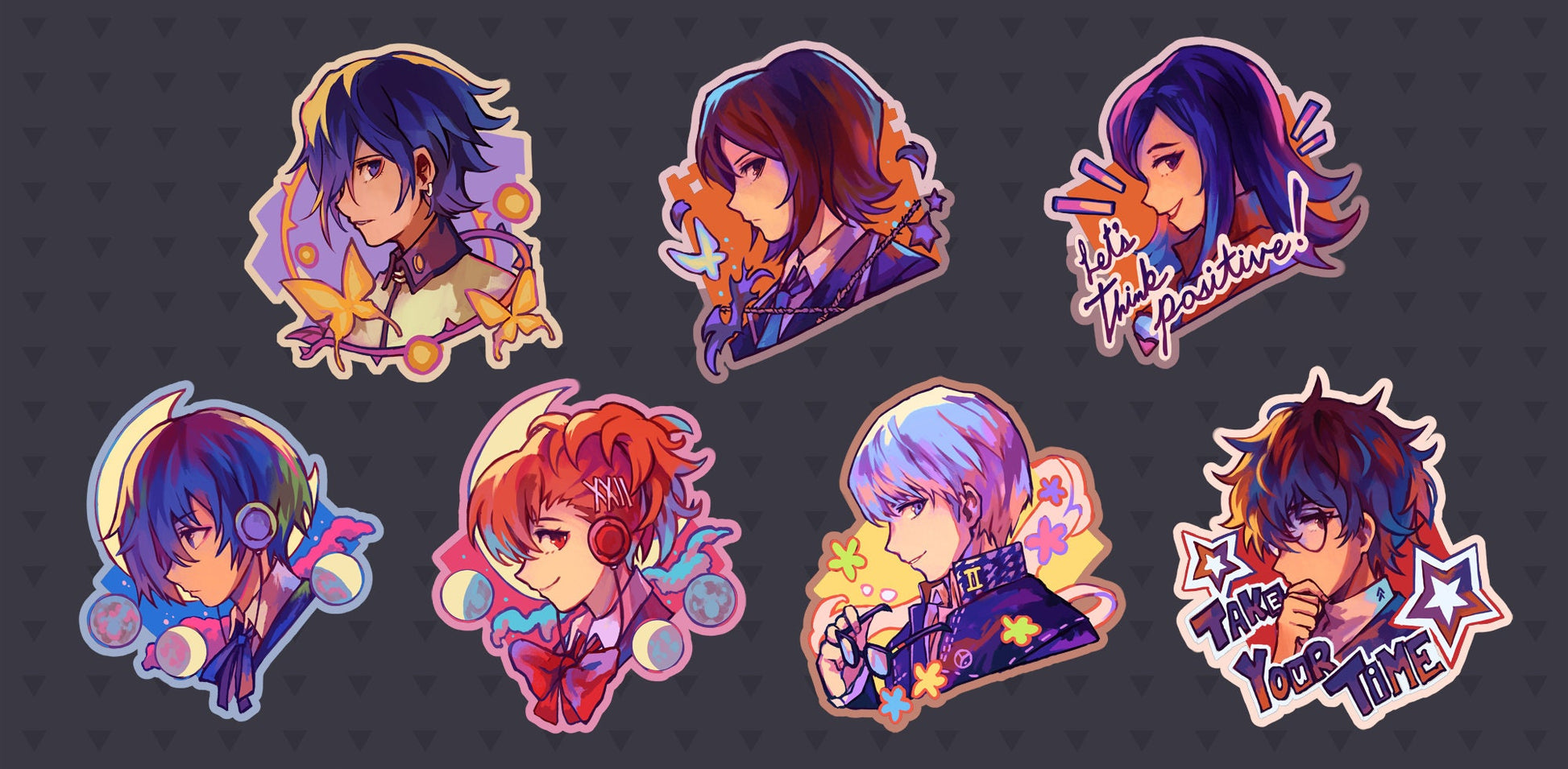 Die cut stickers featuring the protagonists from Persona 1 through 5! Each sticker measures approx. 3" x 3" (may vary depending on the character), and is printed on vinyl with a matte finish.