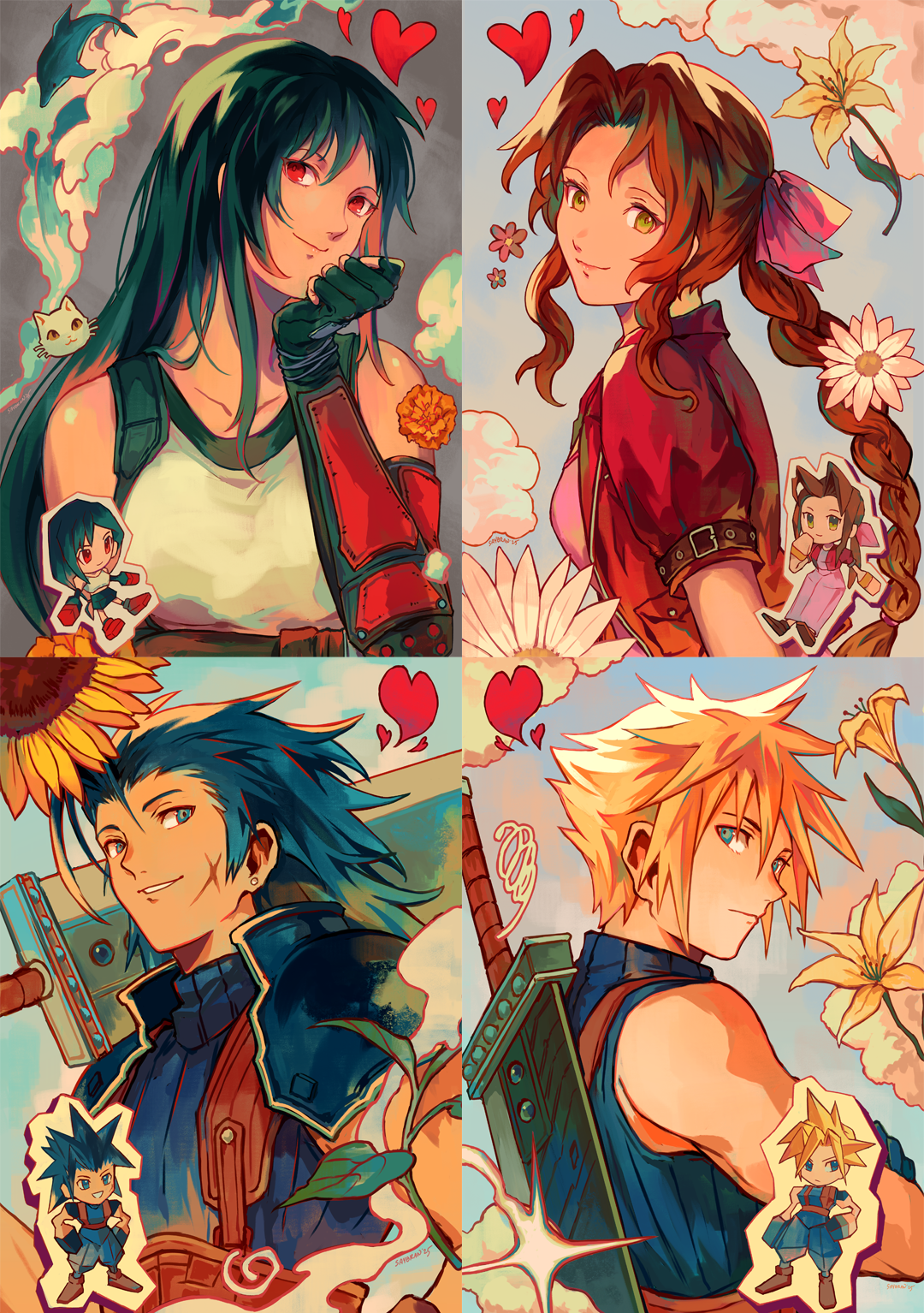 5x7" mini prints (~12.7cm x 17.78cm) versions of my clear photocard series featuring Tifa, Aerith, Zack, and Cloud! The artwork is printed on sturdy, 80 lb. light cardstock matte paper.